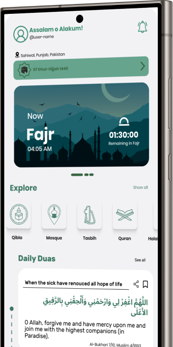 Start your day with Fajr reminders and spiritual guidance. Ahmed begins his morning with Rafiq’s location-based Fajr alerts, ensuring he stays connected to his spiritual duties right from the start.